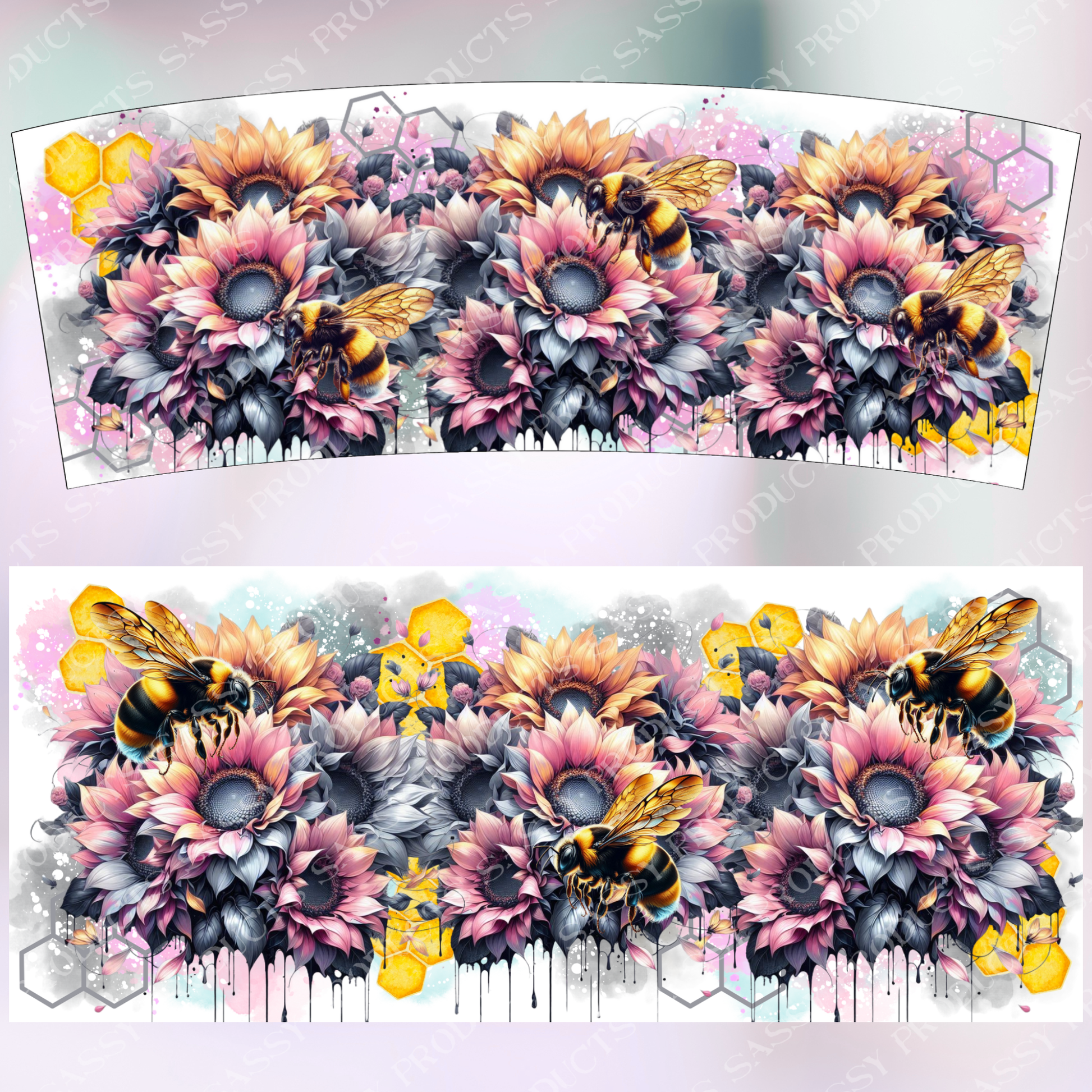 Bees - Sunflowers - Pinks and Yellow - 30oz tumbler Design 30oz - PNG (Digital Download)